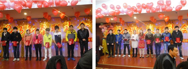 16:20,一場屬于萬正人的2013年新春聯(lián)歡會正式拉開序幕。主持人沈曉麗、鄧健的亮相之后,現(xiàn)場的氣氛愈加熱烈。本次新春聯(lián)歡會共分為四個環(huán)節(jié),即領(lǐng)導(dǎo)賀詞、年度表彰、幸運(yùn)抽獎、新春年夜飯。首先,副總經(jīng)理王德瑜為全體萬正人送上了新一年的賀詞。他一再強(qiáng)調(diào),正是全體萬正人團(tuán)結(jié)協(xié)作、積極進(jìn)取的優(yōu)良傳統(tǒng)和鍥而不舍的拼搏精神使公司迎難而上,勇克困難,為2012工作劃上了圓滿句號。同時,他指出,2013年公司將以“加快管理提升,提高質(zhì)量效益”為目標(biāo),要在管理提升、績效執(zhí)行、持續(xù)改進(jìn)、建好隊伍四個方面實現(xiàn)新的飛躍。王總振奮人心的賀詞讓大家內(nèi)心澎湃,士氣大振。現(xiàn)場的喝彩聲、掌聲絡(luò)繹不絕。