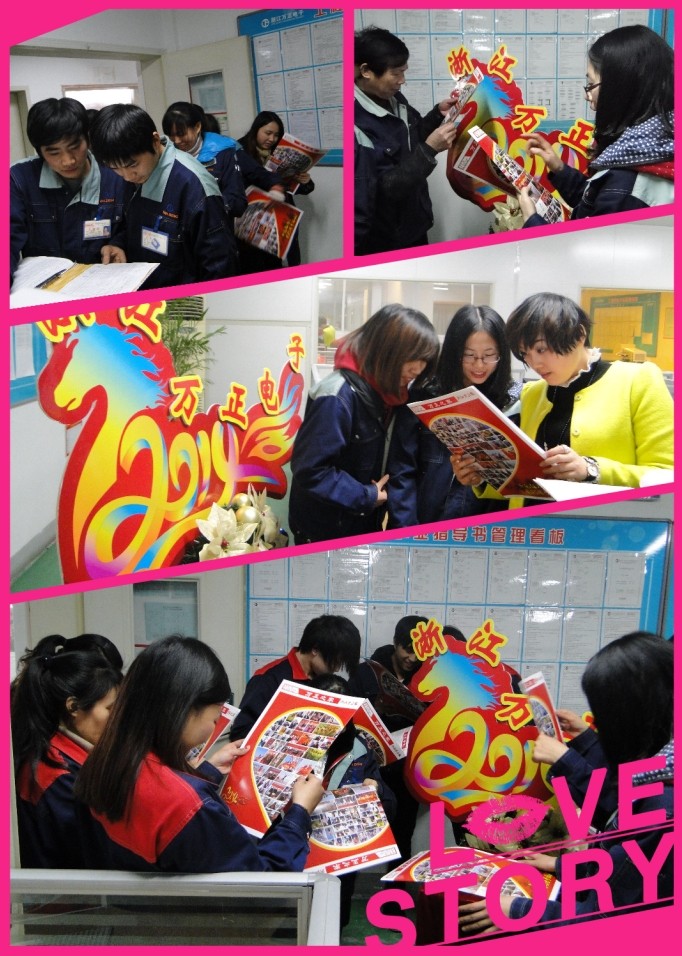 二零一四年一月十六日下午一點整,一輛花朵盛開、彩蝶飛舞的“馬年”小推車緩緩地推入了公司的車間,它散發著新春惹人愉悅的氣息,裝載著公司對全體員工們深深的新年祝福。這是萬正公司給員工現場送紅包了!喜聞喜訊的員工們帶著微笑,踏著輕快的步伐,紛紛前來領取新年紅包。今年正值公司成立十周年,因此除了新年紅包,公司更給員工們發放了工齡獎紅包,以感謝為公司十年發展作出貢獻的員工們!大家感受著公司祝福,愉悅的心情溢于言表。同時,公司為員工們送上新年特刊---《浙江萬正報》,看著大家宣讀著2013年度公司“一優一兵四星”的先進事跡,看著他們在“萬正之家”中尋找自己的笑臉而不時露出的微笑,身在其中的我不得不被這其樂融融的氛圍所感染。