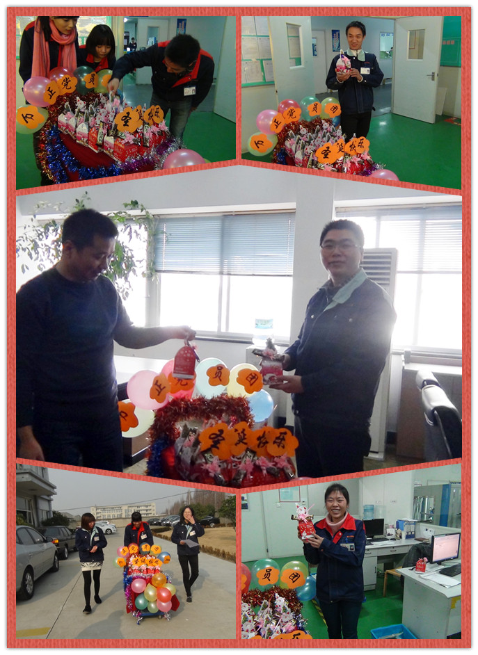 這是浙江萬正電子科技有限公司團(tuán)委正在給全體團(tuán)員、黨員派送圣誕小禮物:平安果和巧克力——預(yù)祝大家生活平平安安、甜甜蜜蜜。一個(gè)個(gè)紅色的或粉色的小禮盒,讓大家滿心歡喜。手拿一個(gè)個(gè)小禮盒,團(tuán)員、黨員都露出了喜悅的笑容。