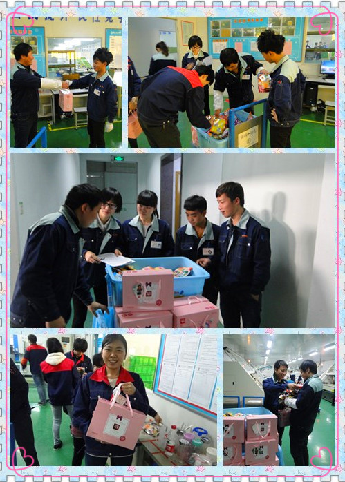 會(huì)議結(jié)束后,各團(tuán)干部立馬開(kāi)始了2014年平安夜團(tuán)員平安祝福活動(dòng)與全員果珍派發(fā)活動(dòng),因?yàn)檫@一天是青年人喜歡的節(jié)日——平安夜。歡聲笑語(yǔ)中,團(tuán)干部為團(tuán)員一一派發(fā)了溫馨禮物——卡通熱水袋,同時(shí)為全體員工遞送了帶有圣誕小卡片的果珍。禮物雖小,但是經(jīng)過(guò)特別精心地準(zhǔn)備,它們猶如冬日的暖陽(yáng),使大家暖在心窩里。