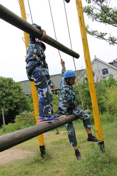 在訓(xùn)練場(chǎng)上,我們不分年齡,不分工作的職務(wù),訓(xùn)練分兩組,一組為“突擊隊(duì)”,二組為“野狼隊(duì)”,我很榮幸的加入了野狼隊(duì)中,在隊(duì)長(zhǎng)及隊(duì)花的帶領(lǐng)下,我們高唱隊(duì)歌“相信自己”開(kāi)始了一天的訓(xùn)練。整個(gè)訓(xùn)練感觸最深,最想與大家分享的有三個(gè)項(xiàng)目為:天梯,雷區(qū),盲人方陣。