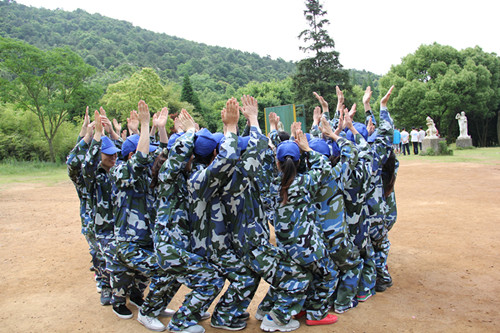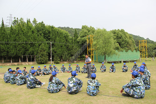 基地位置位于南北湖的半山腰位置。綠林環(huán)繞、青翠欲滴,這里的空氣格外清新,仿佛步入了凈化心靈的圣地。一幅幅美麗的春色畫卷,生機盎然,給人一種神清氣爽的感覺,令人心曠神怡!在基地教練員的帶領(lǐng)下,大家聽從指令,全體隊員換上拓展服裝——迷彩服,這是多少人的迷彩情結(jié)啊,今天終于實現(xiàn)了。