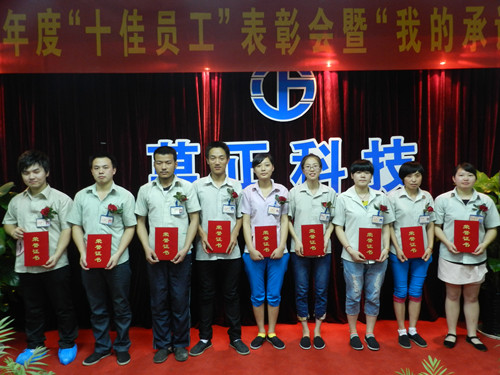 2012年04月-06月期間,公司開展了年度“十佳員工”的評選活動,經各部門組織推薦和“十佳員工”評委會的討論決定,分別產生了10名“十佳員工”和10名“表揚人員”。在表彰會上,王副總宣讀了《關于二O一二年度“十佳員工”及表揚人員的表彰決定》。接著,他與行政保密部經理葉秀華分別為“十佳員工”、表揚人員頒發了榮譽證書、獎品、獎金,以資鼓勵。面對榮譽,“十佳員工”與表揚人員笑靨如花,胸口的紅玫瑰也黯然失色了。對于他們來說,在萬正這片沃土上,他們平日里的辛勤的汗水,在今天終于長成一片豐收的“莊稼”。今天是一個豐收的日子!