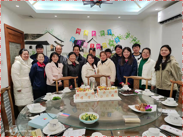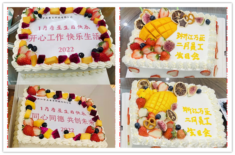 2022年1月15日和2月26日的晚上18:00,公司為一月份和二月份生日的員工舉辦了兩場集體生日會,累計共50余名生日壽星參加。行政部精心組織的生日會正是傾注了公司對員工的親切關懷,代表公司對員工長久以來努力付出的肯定和感謝,在萬正大家庭里“同心同德,共創未來”。生日會上,必不可少的環節是和聲齊唱生日歌,唱完中文版,還有英文版。最后,各部門經理及主管代表一同與壽星切蛋糕、吃長壽面,在歡笑聲中,一同分享美味與快樂并合影留念。