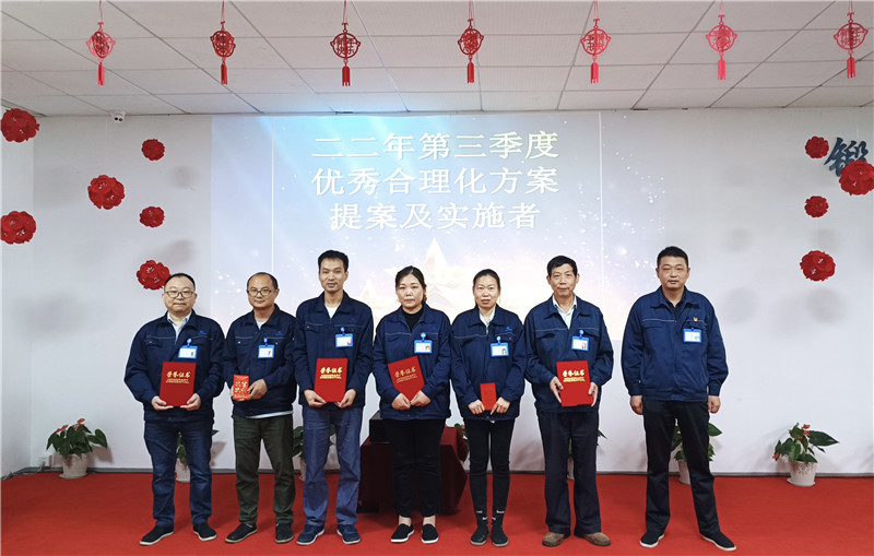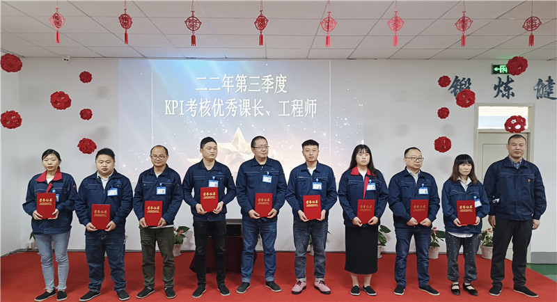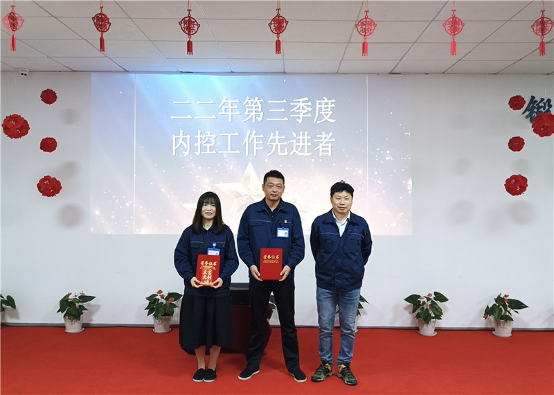 二O二二年十月二十五日上午八時,公司二樓培訓(xùn)室隆重舉辦“二O二二年第三季度評優(yōu)表彰會”。表彰會由行政部沈靜南同志主持,公司課長以上人員和受表彰人員共60人參加。公司總經(jīng)理王德瑜同志、董事會秘書/財務(wù)總監(jiān)朱建忠同志、董事會辦公室主任邵嘯同志等領(lǐng)導(dǎo)蒞臨現(xiàn)場。