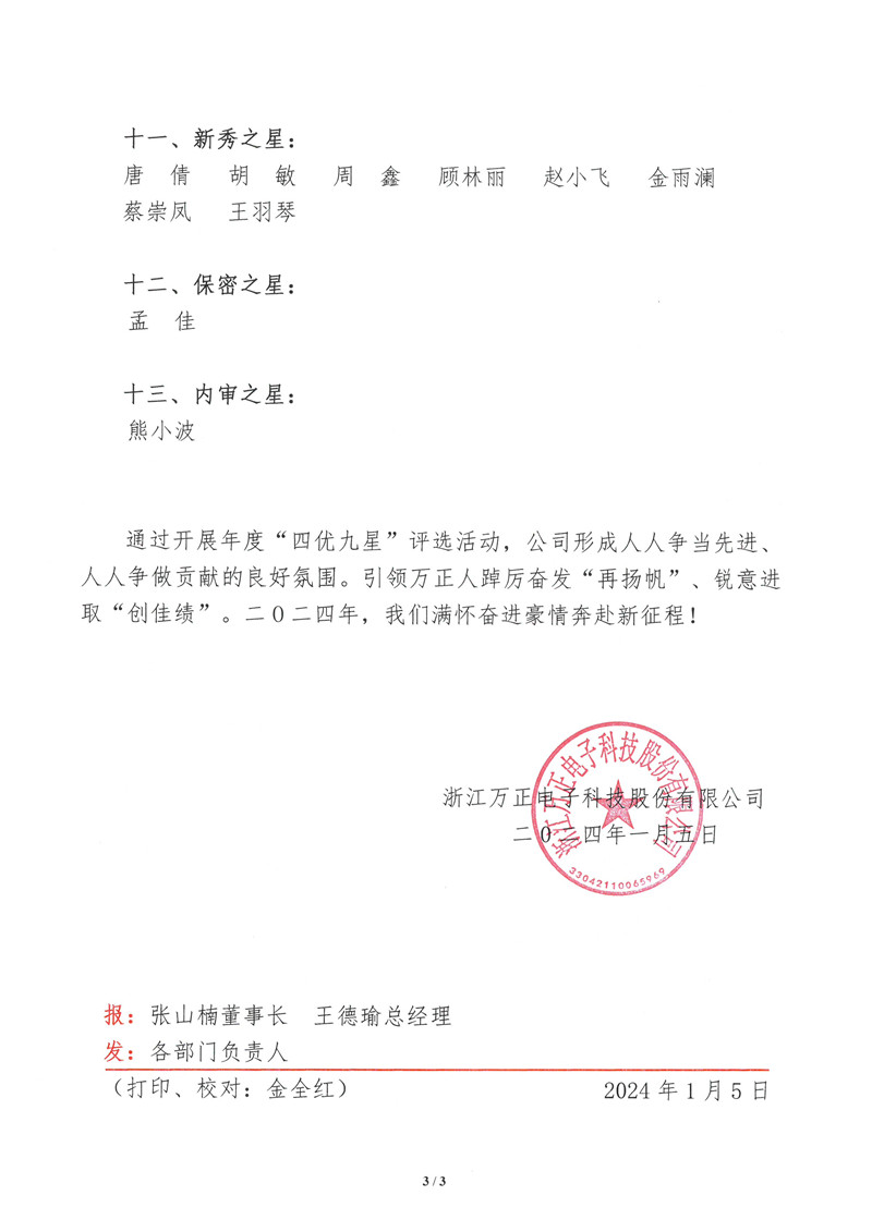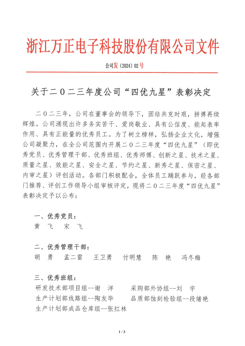 關(guān)于二0二三年度公司“四優(yōu)九星”表彰決定